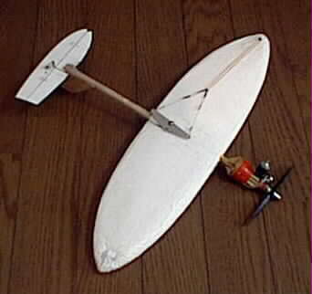 発泡スチロールの主翼に8mmの丸バルサを串刺ししました。
