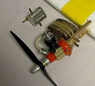 飛行時間を稼ぐため、別タンクにしました。09用(ヒバリ製?)真鍮タンクを約半分に短くしました。(久々に半田付けしました)