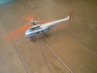 約40年前の西ドイツ製のヘリコプターの玩具です。当時日本では、700円程の価格で販売されましたが、 欲しくても大変高価で手が出ませんでした。