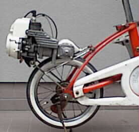 エンジンは専用ステーの先、クランクケース下方辺りを軸に前後に可動します。