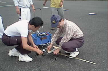 スピード機の始動です。バッテリー係りも含めて3人がかりでした。