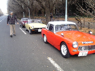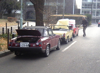 MG Midget Owner's クラブ [Club G-AN]の皆さんの新年ミーティングに参加しました。 集合場所は青山銀杏並木。 「midget」3台、後から松下さんの「ミニ」。計4台でした。