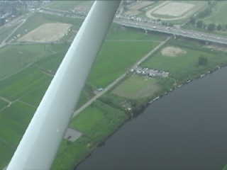 右上の「白い点」は飛行中のUコン機。