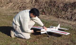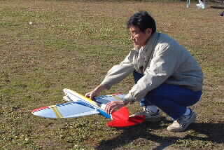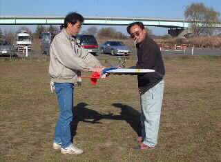 石川さんの新作機。翼が取れる構造になってました。何時も始動一発です。関心します。。