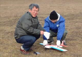 強風をついて果敢に挑戦する艦戦さん。助手は井口さん。