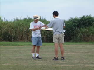 手投げ準備の横山さん。左で説明するのが小美濃。(撮影:艦戦さん)