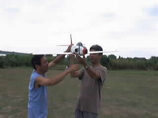 テスト飛行に成功!! 横山さんの力強い手投げに助けられました。(撮影:艦戦さん)
