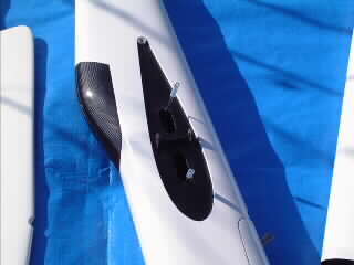 翼胴結合部。主桁フランジ位置に胴体から2本の部材が飛び出し、下面から差し込まれた1本のピンで結合されます。中々巧妙な構造でした。 後縁部の「丸にスリット」はフラップにトルクを伝える仕掛けのようでした。