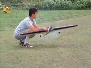 吉松さんの4サイクル機。助手は横山さん。