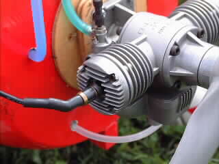小美濃の「geebee」のエンジン調整。 斉藤さんが本機用にブースターケーブルユニット(直列配線)を作ってくれました。