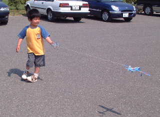 Gコン(ゼロ戦)を飛ばす横山さんの長男君。華麗なバックステップを見せてくれました。