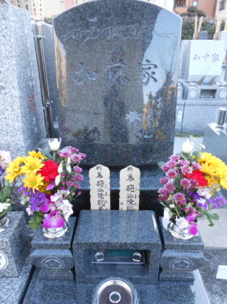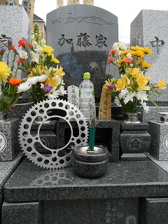 今日は命日(三回忌)。墓石はとても素敵な花で飾られていました。