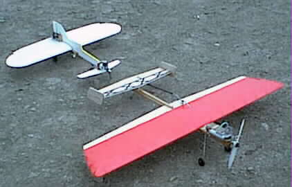 高野さんの新作機と小美濃の「飛燕改エンテ双発機」です.