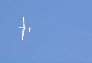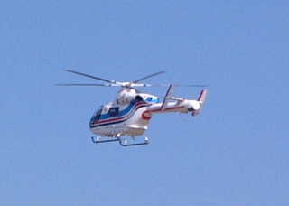 グライダーを空撮するテールローターが無いヘリコプター。