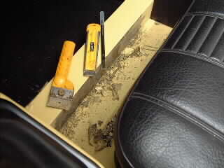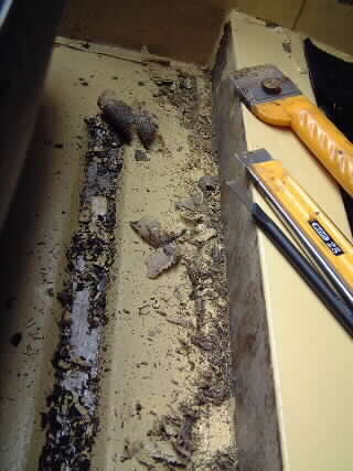 20年程前までは無神経にも濡れたカーペットをそのまま放置してました。 錆の具合を確かめつつスクレーパで剥がし始めました。