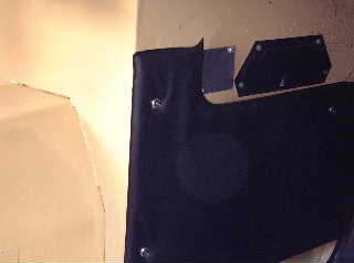 「ヒータコントロール用扉」の後ろに取りつけた四角いアルミ蓋。