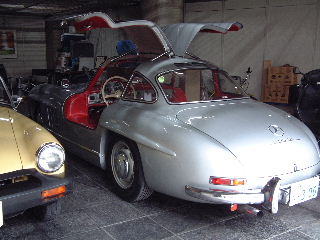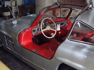 お馴染みのガルウイング(300SL)。乗車時に、ハンドルが90度手前に倒れます。