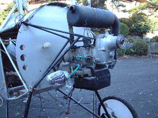 ロータリーエンジン(シリンダーが回るタイプ)の変わりにスノーモービルのエンジンを倒立で搭載。