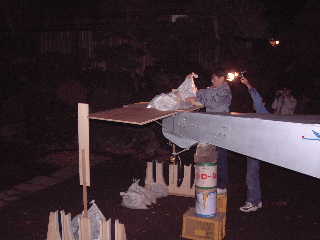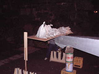 水平尾翼の荷重テストの準備。