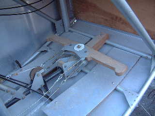 操縦系統。フットバーにつながるターンバックル(4つ)はラダーと尾輪の索に向かいます。