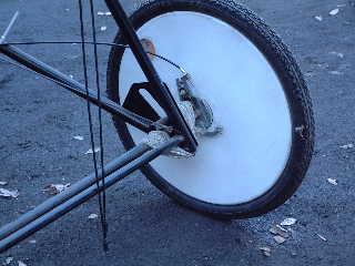 左車輪。実機同様、地面からの衝撃はゴム索で受けます。草避けのスポークカバーも雰囲気がでてました。