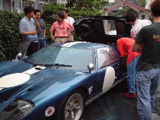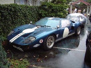 「GT40」。後ろのビニールカバーは、ジャガー「Dタイプ」。