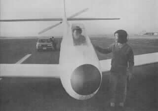 プロペラは、メス型上でポリエステル樹脂を含侵したガラスクロスに、 5〜6mm角の桧を7〜8本並べてストリンガ補強し、離型して上下を合わせ て完成、だったと記憶します。製作は法政大学のグライダー部OBでスー パーレジンに勤める杉山さんの協力を得ていました。