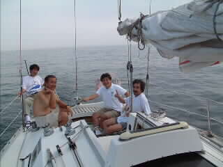 今回のクルージングメンバーはヨット歴30年以上のベテランばかりです。船長は古矢さん。