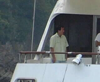 デッキの加山雄三さん。お互いに手を振り合いましたが、おじさん同士