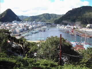 下田港の漁船の係留地。左上方が下田駅と商店街。