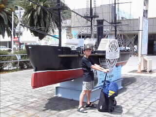 下田駅前で記念撮影。車と違って、電車ものんびりできて良いですね。