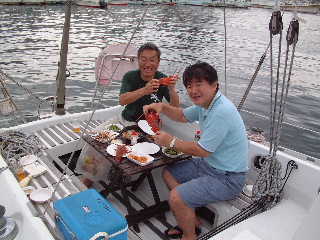 「ロプノール」船上で、伊勢海老パーティ。