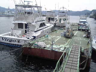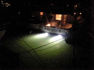国際カジキ大会の参加艇。海中を照明。不思議な雰囲気でした。