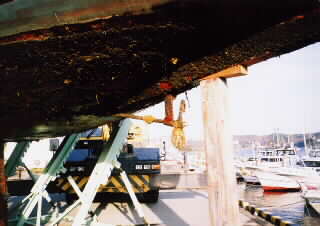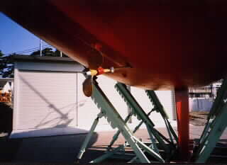全景。6本足の船台は3本づつ支え変えることで接触面を塗装できます。 今回は船検も同時に行いました。請求書が怖い。。