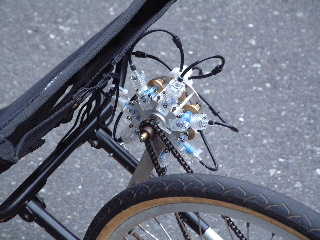 ベース車はトライク。ハンドルにはバックミラーとブレーキを装備。